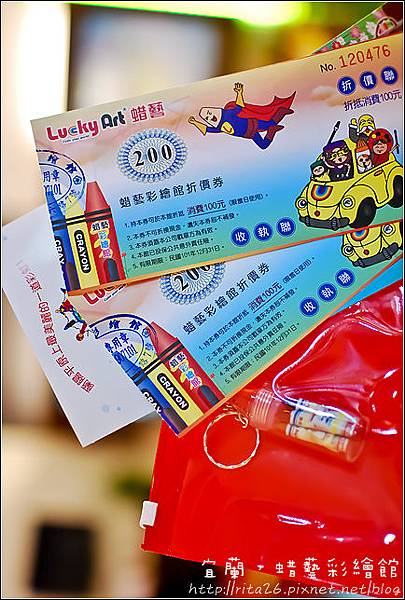 一張門票任選一張圖畫紙 桌上有提供很多色彩的蠟筆和彩色筆供小朋友畫畫