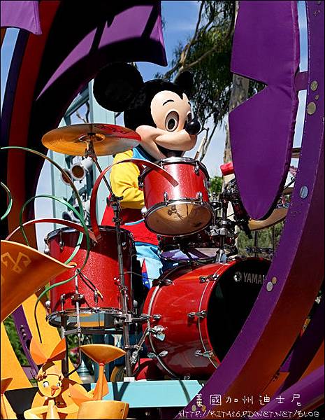 配合著好聽的鼓聲 米奇還自己加入打鼓的陣容哩!